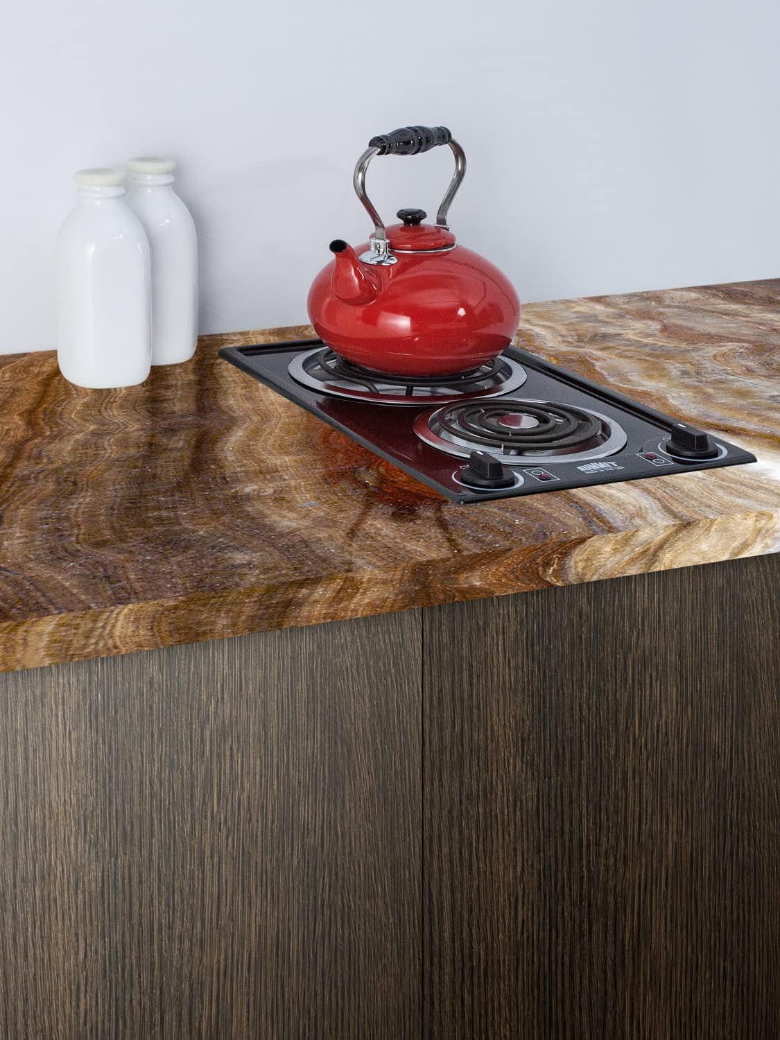 Summit Appliance CCE212BL 12" Wide 115V 2-Burner Coil Cooktop in Black Porcelain Surface, Push-to-turn Controls, Chrome Drip Bowls, Recessed Top, Coil Elements, 6" Front Element, Made in the USA Summit offers an extensive selection of slim-fitting cooktops designed and manufactured in the USA. The CCE212BL is a 115V cooktop with a porcelain surface in a jet black finish. Two coil elements (6" 600W in front and 8" 900W in rear) offer durable heating, with removable chrome drip pans included. The push-to-turn knobs are simple and intuitive, with indicator lights that show which burner is in use for added safety. This cooktop includes a 3-pronged 4' long power cord for convenient installation. Key Features - 115V design with pre-installed power cord - Slim 12" width is an ideal fit for hotels, tiny homes, and other kitchens with limited counter space - Recessed surface in a black porcelain finish brings cleaner style to the kitchen - Coil elements for long-lasting durability - 8" rear larger element is ideal for heating wider pots and pans - Made in the USA Specifications - Height of Cabinet: 3.25" - Width: 12" - Depth: 19.75" - Cabinet: Black - US Electrical Safety: ETL - Canadian Electrical Safety: ETL-C - Amps: 12.5 - Voltage/Frequency: 115V AC/60Hz - Heating Type: Radiant - Surface: Porcelain - Element Type: Coils - Number of Elements: 2 - Controls: Dial - Countertop Cutout Height: 5" - Countertop Cutout Width: 11.13" - Countertop Cutout Depth: 19.13" - Power Source: 115V - Element #1 Size: 6" - Element #1 Wattage: 600 - Element #2 Size: 8" - Element #2 Wattage: 900 - Weight: 14 lbs. - Shipping Weight: 20 lbs.